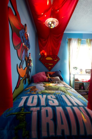 Someone left a comment on the shot of the entire room that said, “It feels like the girl’s side of the room takes up just a little more than the boy’s side.” To which Rodriguez deftly replied, “Actually they are both ‘girl’ sides, I have twin daughters and one is infatuated with Superman.”