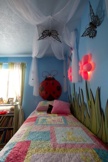 If ever there were a story meant for us, this is it. Graphic artist and photographer Mark Rodriguez has twin daughters. Those two girls like very different things. That’s ok by him, he created a room for them that gave them the best of both worlds. Check it out!
