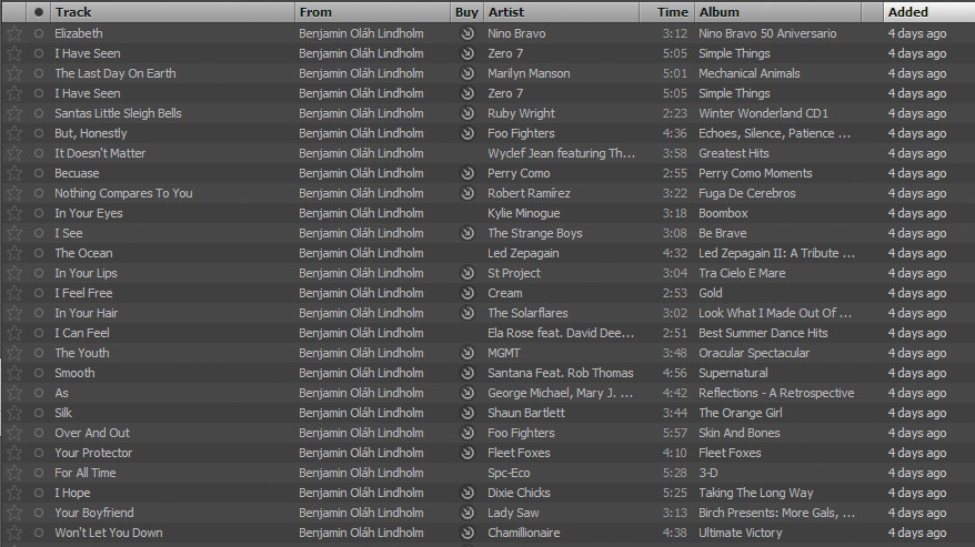 A fellow named Benjamin Oláh Lindholm came up with a clever, geeky way to show his affection for his girlfriend Elizabeth: He used digital music service Spotify to assemble twenty-six different song titles into a love poem. Who knew there was a song called “As“?
