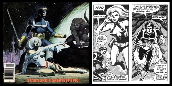 After hearing this story of his origin, Peter Quill decided to continue his journey through space rather than stay and be bound by life in the royal court. This led to the further adventures that were drawn by Carmine Infantino. In those stories, it was revealed that Ship had a female personality and was in love with Peter. She even took on female form at one point and pretended to be a woman named Carynth, aiding Star-Lord on an adventure and sharing a kiss with him. Peter couldn’t explain why he was drawn to this mysterious woman who spent half the story naked due to a monokini outfit that was easily torn apart when she faced danger. Ship later resumed her true form, admitted her deception to Peter, who then laughed the experience off (wait, really??) and the two continued their travels with nary a care in the world.