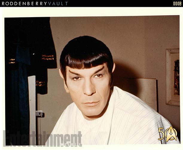 EW has given us a peek at three of the photos to come, including a photo of an old storyboard, a glimpse at young Leonard Nimoy in the makeup chair, and a page featuring the first draft of Star Trek‘s well-known opening monologue. It’s the first draft, though, so it won’t read out the way you remember!