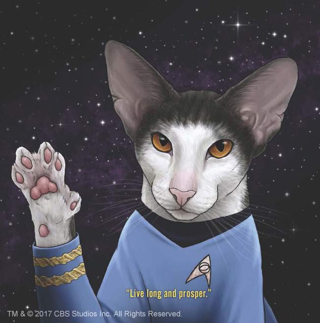 My favorite is probably Kitty Spock’s solo because what’s not love about a furry animal mimicking the popular Vulcan hand gesture? The book is slated for release on March 1, but you can pre-order now.