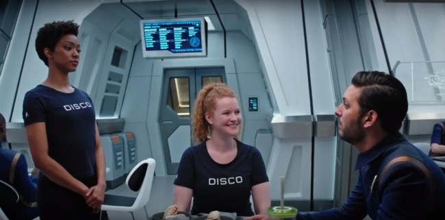 I need to say how much I love that the official Starfleet-issued Discovery casual/exercise-wear says “DISCO” on it. Because every day in Starfleet is like a party! Also, it’s a way of shortening “Discovery.” But mostly the first thing, amirite? And we’ll have plenty more DISCO shirts and bonding between my new favorite Star Trek trio to look forward to (I instantly loved Burnham-Tilly-Tyler forever), because Star Trek: Discovery has been renewed for a second season!