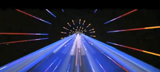 Excellent video illustrating the evolution of the Star Trek warp jump as seen in every Star Trek movie since 1979 via Gizmodo. For my money, the coolest is the jump from KHAAAAN! Star Trek II: The Wrath of Khan (1982), depicted above.
