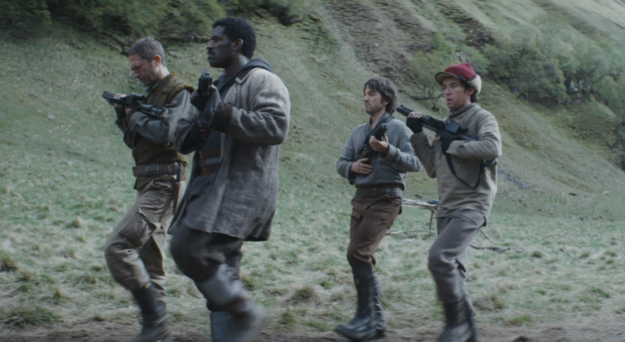 Cassian, for his part, makes it clear that he’ll fly it out and that if he’s putting himself in this danger, he’s going to be in control of it, and they seem to reluctantly agree. But then later in the episode, Cassian again begins to question the team in a polite way: by pointing out that they’re all in the wrong formation as “soldiers” walking.