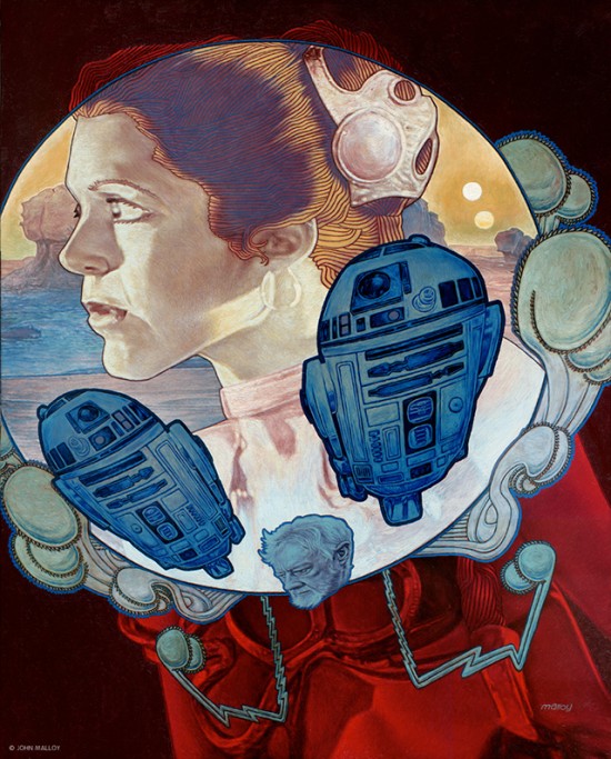 Well, it’s far, far away if you don’t live on the West Coast. This Saturday, May 4th, is Star Wars Day (because “May the Fourth Be With You.” Punny holidays are the best kind), and to celebrate that momentous occasion Alhambra, CA’s Gallery Nucleus is debuting a new Star Wars exhibit titled “A Saga in the Stars: A Tribute to a Galaxy Far, Far Away.” A few selections from the show are behind the cut. If you want to see the more and happen to be in the Alhambra area, it’s open until May 26th.