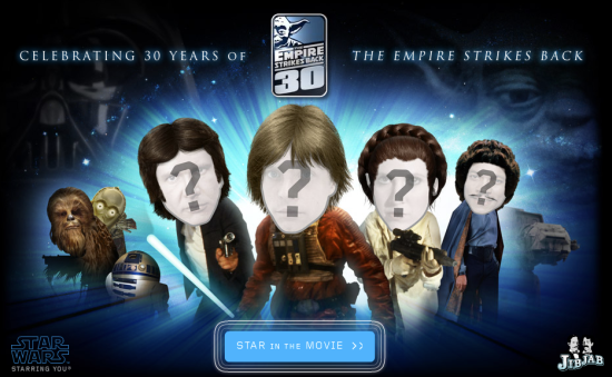 The folks at online humor studio JibJab have come up with a novel way to celebrate: In collaboration with LucasFilms, they’ve rolled out a feature on their site that lets you insert the faces of you and your friends into scenes the original Star Wars trilogy. The effect is strange, to say the least: