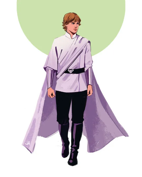 Jen’s “role swap” universe started back in June of 2016 with the featured image above, but in October, she published a picture titled “Jedi Leia and Prince Luke“: