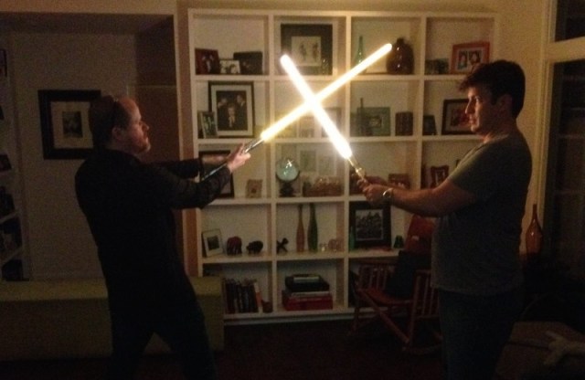 Oh, yeah, this is Joss Whedon and Nathan Fillion playing with lightsabers. We thought it was appropriate. Hey Disney, maybe now we can get the film’s subtitle?