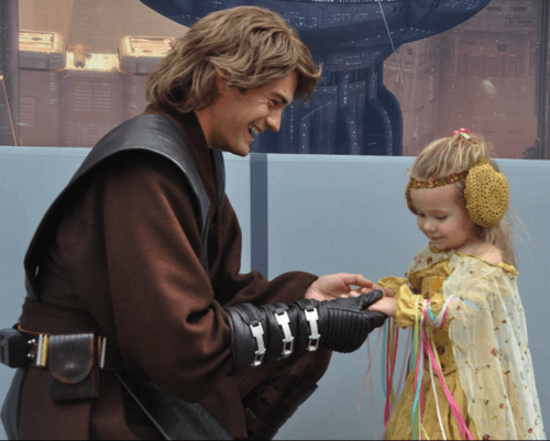 “I mean, yeah, I killed all those younglings, but you’re just so adorable. I couldn’t possibly.” Seriously, though, this ickle Padme cosplay—worn by the daughter of Tumblr user My Disney Daze at Disney’s Star Wars Weekends—is so cute it’s almost enough to conquer my natural tendency toward cynicism and inappropriate humor. Almost. See her with Disney’s Leia face character behind the cut.