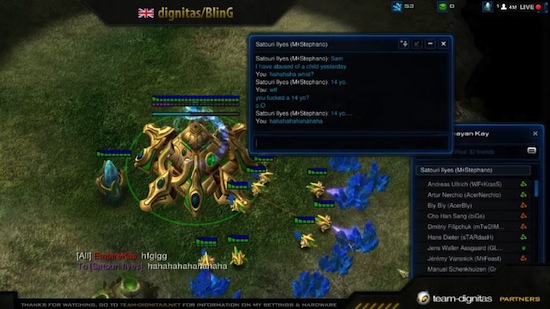 We have to face facts, people. The internet is a social place: Even if there’s no one else in the room with you, people will see the things you say online and you are accountable them. For example, if you don’t want people to think you’re a sex offender, don’t talk about having sex with children. A player from professional Starcraft II squad Evil Geniuses is learning that lesson the hard way. Ilyes Satouri, A.K.A. Stefano, has been suspended by his team after saying he molested a fourteen year-old boy during a publicly streamed in-game conversation.