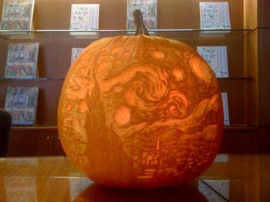This is Starry Night Carved on a Pumpkin