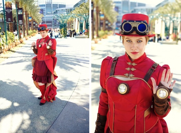 Michele of The Suitcase Studio wore this outfit, designed by her husband and stitched by her mother-in-law, to WonderCon in Anaheim last week. I guess the family that cosplays together, stays together.