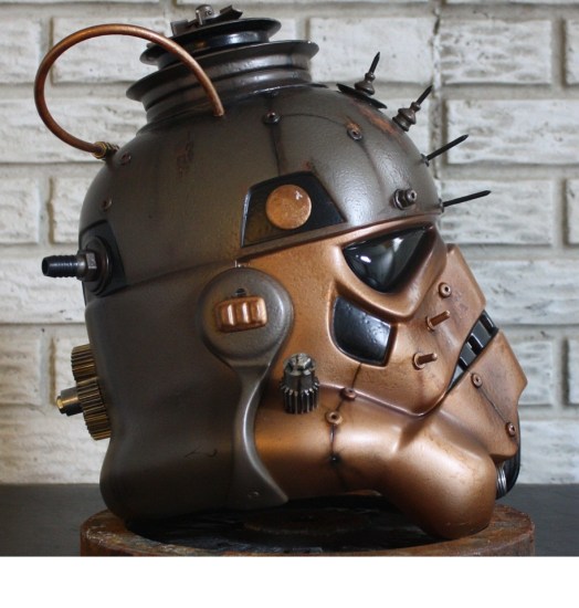 This steampunk stormtrooper helmet was created by Brian Rood for The 501st Legion‘s charity event, the TK Helmet Project. Proceeds will go to the Make A Wish Foundation.