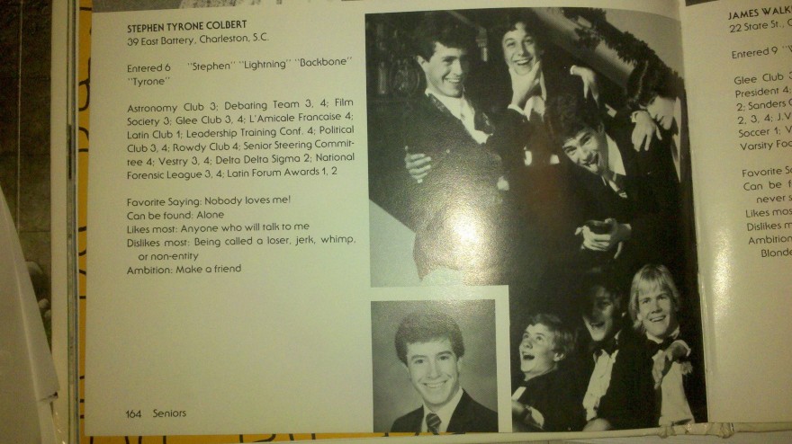 Reading Stephen Colbert‘s senior yearbook page, you know that you would have wanted to be friends with him if you had gone to high school together. Apparently, this was his #1 ambition too.