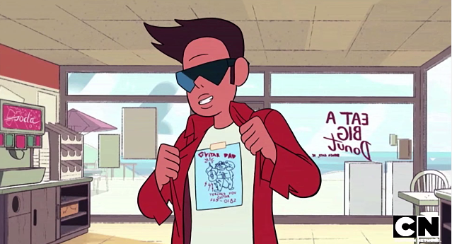 The Recap: Steven designs a poster for Greg’s guitar lessons and Buck Dewey convinces him to put the design on a(n instantly popular) t-shirt. Steven’s feelings about the situation become complicated when he realizes people are enjoying his picture ironically rather than appreciating its original intent.