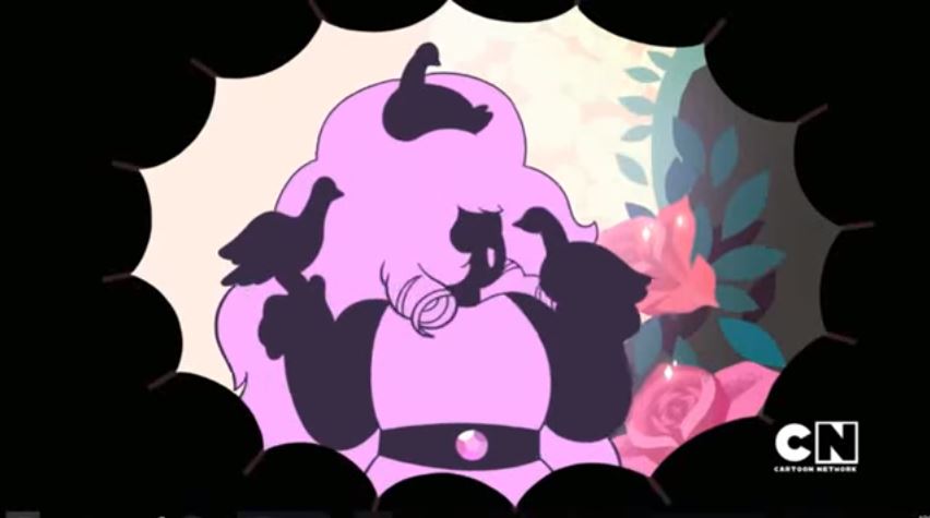 As an episode on its own, I can say that this is pretty fine stuff. It brings back the gorgeous storybook aesthetic from “The Answer,” one of the show’s best episodes, and everything that episode did well comes with it. The most front-facing layer of this is that SU continues to be a really important series for young queer viewers of all stripes. Garnet’s story is a rallying cry for those rejected or oppressed by the dominant power structure. Having the Off-Colors there as a sounding board lets it be plainly triumphant in a way it hasn’t for a while, with all that talk of Rose’s complex motivations and morally grey actions.