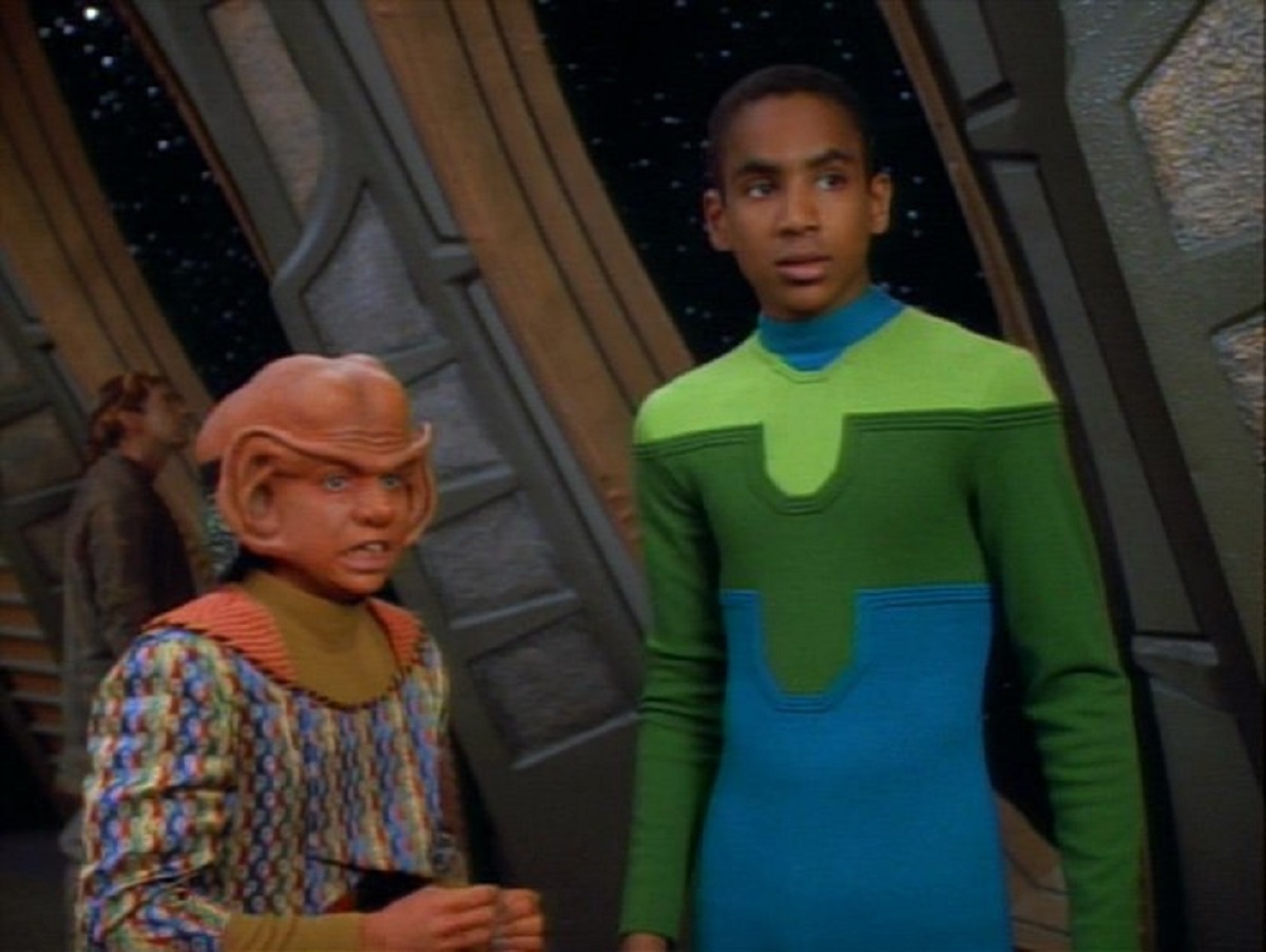 I also disagree about alien costuming. There seems to be a thoughtlessness in older Trek with regard to differentiating between cultures and species. There are small nods to culture like Bajoran earrings, or Worf’s Klingon metal sash, or whatever those things are that Ferengi wear on the back of their heads (to cover neck seams in prosthetic makeup).