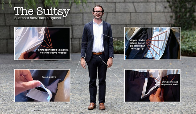 Wearing clothes is just so inconvenient. What, you mean I have to put on pants and a shirt and possibly even a jacket in some circles? Can’t we just zip up our well tailored suits and be done with it? No, we can’t, because as Suitsy creator Jesse Herzog shows us, doing so is kind of like looking into the jaws of an eldritch abomination. I can’t explain why it’s like that, but it is. Just watch the video and share in our anguish.