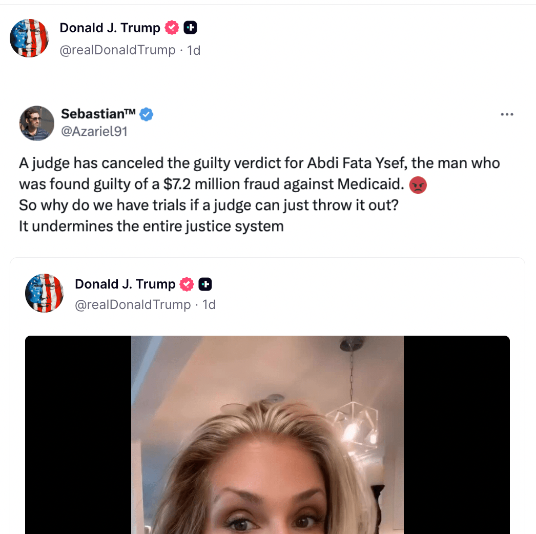 On December 1, Trump went on a posting frenzy on Truth Social. Many of them were videos he posted of things either he had achieved, or negative sentiments towards Democrats. Then, he would repost a quote someone made on one of those posts, much like a quoted post on X.