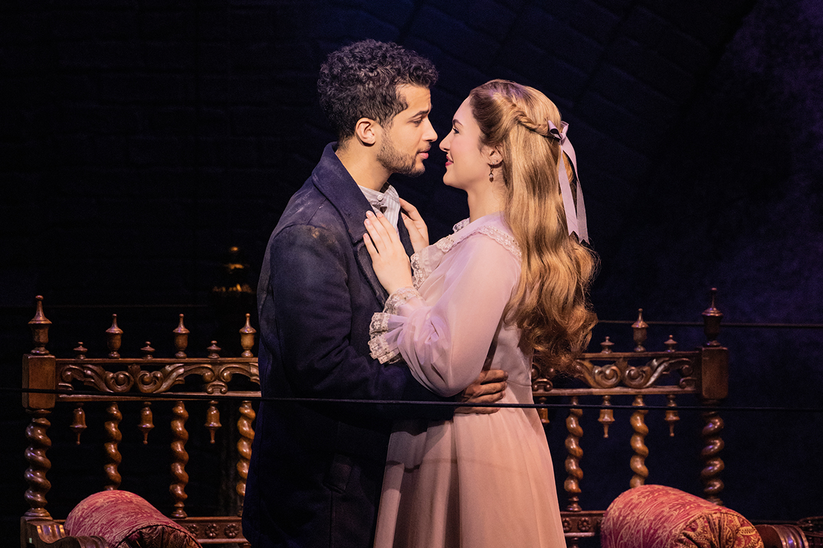 The true heart of Sweeney Todd has always been Anthony. Played by Jordan Fisher, he is a hopeless romantic just wanting to run away with the beautiful woman he saw in the window. Fisher really uses his vocal range to his advantage. The first foray into “Johanna,” a song that returns throughout the show, is softer and less powerful. When Turpin has Anthony banished from seeing Johanna (Maria Bilbao), he stands outside her window belting his love for her once more. And that choice really sealed Fisher’s performance for me.