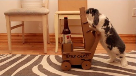 Monday Cute: Wallace the Beer Rabbit Pushing His Beer Cart