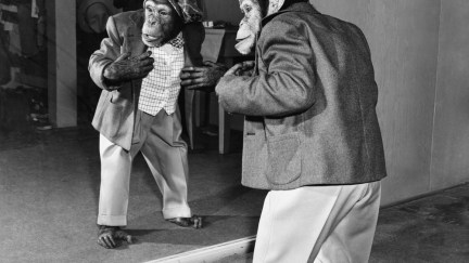 Monkeys See Their Reflection & Immediately Check Out Their Butts Because of Course They Do