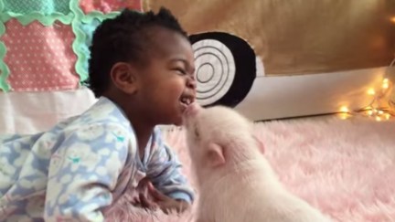 Monday Cute: Here’s a Tiny Human Playing With a Tiny Pig to Make Your Day
