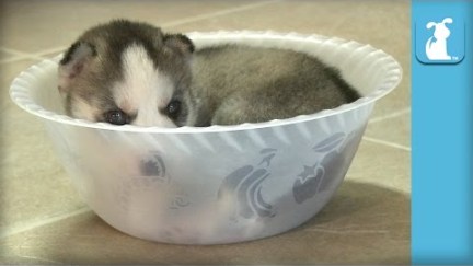 Monday Evening Cute: Husky Puppy In Tiny Bowl Struggles For Freedom