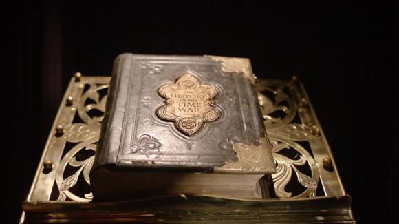 Two more pictures—one of the library, one of a rather intriguing (and possibly spoilery) book in the library—are after the jump. 26 non-library promo pics from the episode can be seen at blastr.