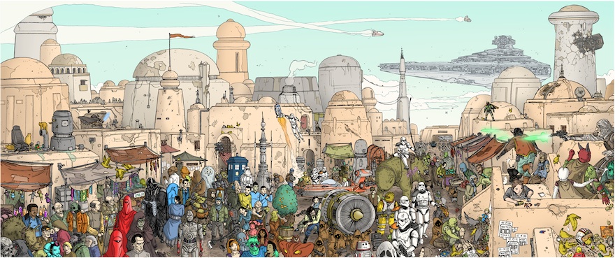 A Cavalcade of Sci-Fi Characters Await You in this Marvelous Tatooine Mural