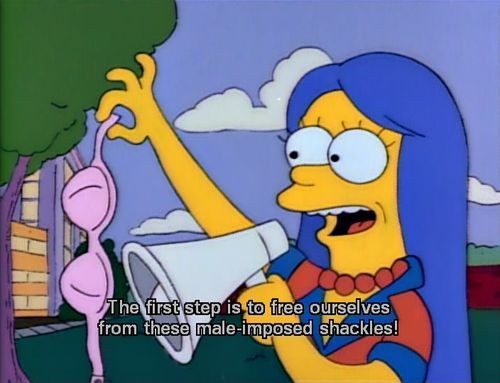 Where to start with this inanity? Maybe with the fact that Maggie is a baby, so we probably shouldn’t claim to know her political leanings. Or with the fact that when in college, Marge participated in feminist bra-burning rallies, and later was a staunch supporter of presumed Democrat Mary Bailey.