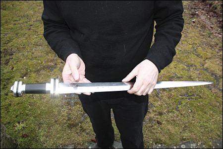 After days of hammering the metal into bars, he took it to a blacksmith, whom he helped to shape it into a blade, which was finished with silverwork.