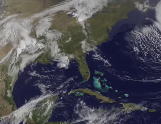 The video begins at 4:15 P.M. on April 2nd and runs until April 4th at the same time. The storms begin to form on April 3rd. To create the video, NOAA used the infared and visible light data showing the swirling clouds over the region and placed that imagery over a view of the land from NASA satellites.