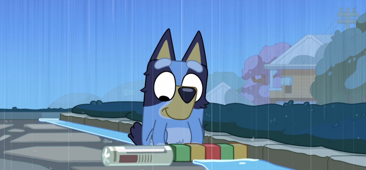 Most Bluey episodes are funny, but “Rain” goes in a different direction. It’s a rainy day, and Bluey tries to dam the walkway in front of her house. This episode, which doesn’t have any dialogue, is a delight for animation fans.