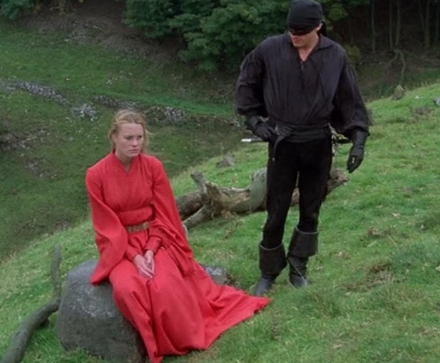 I’ve been growing out my hair for a while now, and when I don’t straighten it, it kinda hangs like Robin Wright’s in this picture … not quite as long, but probably good enough for cosplay purposes, right? So, if I were to obtain a dress like this, I might be recognizable as someone trying to cosplay Buttercup? That’s the plan, anyway. When you’re impatient and sucky at sewing, cosplay plans often turn out poorly or very much balanced upon the kindness of others. The Princess Bride has been a part of the fabric of my childhood, adolescence, and now adulthood, and I would dearly love to pay actual fabric homage to one of my favorite movies by cosplaying Buttercup in the red dress.