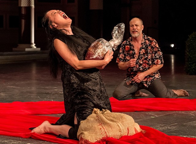 Whether the extended Japanese sequences work for you appear to be a matter of opinion, based on what I heard from audience buzz after the show. Some people thought it wildly moving, while others found the inability to know what Agave is saying ultimately frustrating. I come down between the two. It’s incredible to realize we can essentially understand the flow of Agave’s words because of the context. Yet this is the climax of “The Bacchae,” and non-Japanese speakers won’t get to know how Euripides wraps it up from the perspective of one of the Bacchae herself.