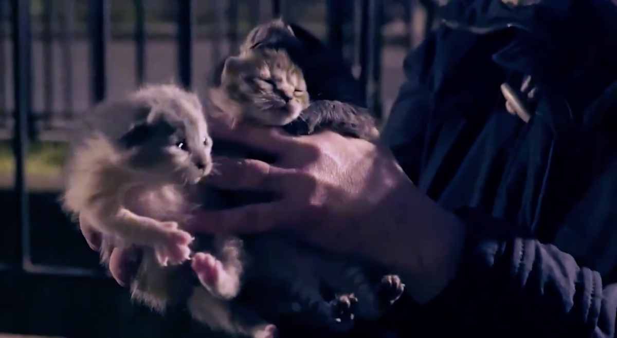 The official website for the film showcases several clips of the rescuers at work. One, that does contain some graphic imagery, shows Sassee coming to the aid of a cat with an injured tail. When she approaches the cat with a can of food, the skittish animal immediately comes running to her; when we later see her with the cat, it is basking in attention and demanding pets. Another focuses on Claire tending to a mama cat and her kittens, who are all immensely sweet animals; the tears start coming when Claire speculates that someone threw the mother out when she was pregnant.