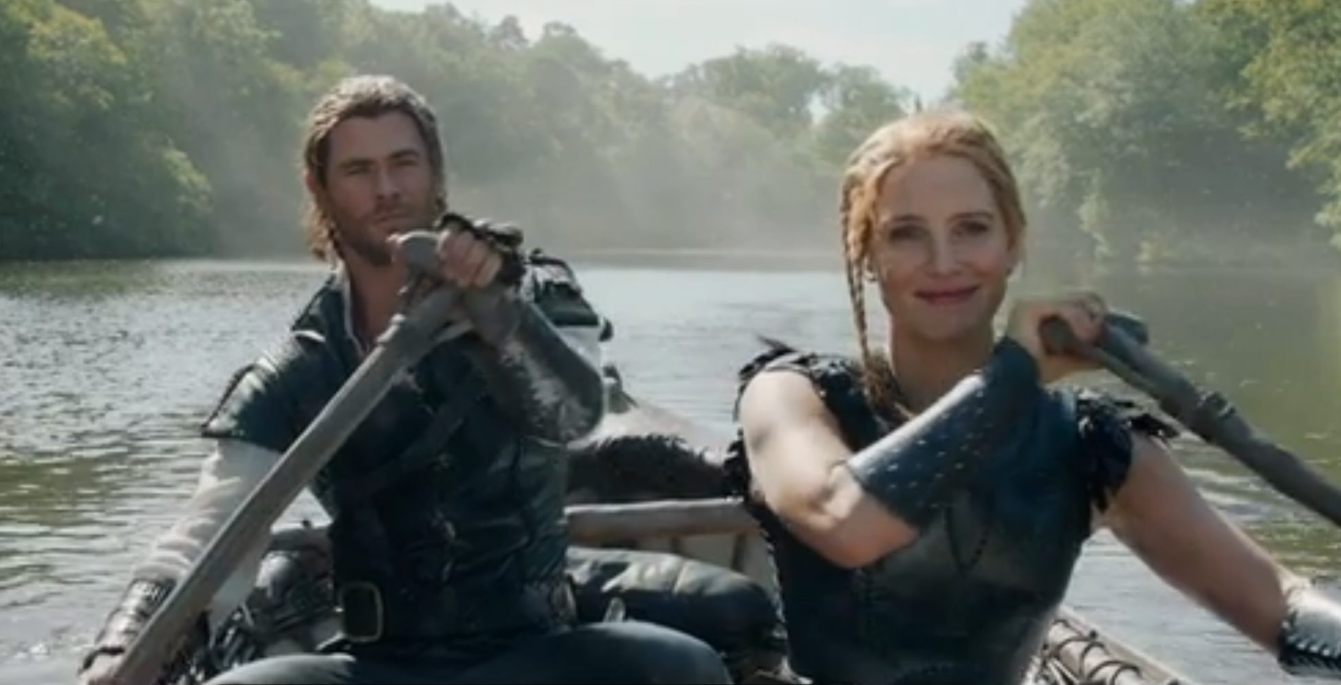 Row, row, row your boat, gently down the stream. Merrily, merrily, merrily, merrily, Chris Hemsworth is a right glute. Entertainment Weekly shared an exclusive clip of Hemsworth’s Eric and Chastain’s Sara rowing a boat together and Eric trying (and failing) to engage in flirtatious banter. We watch the two joke about him liking loud and angry women, a tendency to make himself the hero of every story he tells, and apparently there was a time the two were tangled up together in a net. In the film, the two warriors were part of an army of children trained to become warrior huntsmen (which is a little more than troubling?) and Sara was, in the words of the synopsis, “the only woman who has ever captured his heart.”
