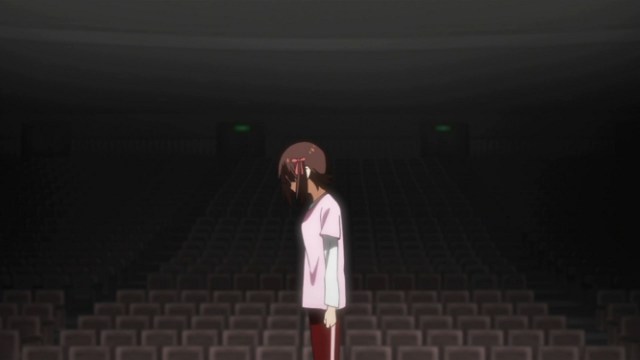 Even the biggest breakdown can be recovered from, according to The idolm@ster. Said breakdown befalls Haruka, the most upbeat of the group. Now that the idols are all famous, they each have an insane schedule, often apart from each other. Haruka, who enjoyed being together the most, struggles to find meaning in her work. Even as she puts her all into a part in a play, the seats where the audience would sit are both literally and figuratively empty to her. In the end though, she has faith that the people she has given her trust and support to up until now will be there for her, which they are. The fact that said support comes in the form of a ridiculously well-timed video commercial does little to take away from the moment.