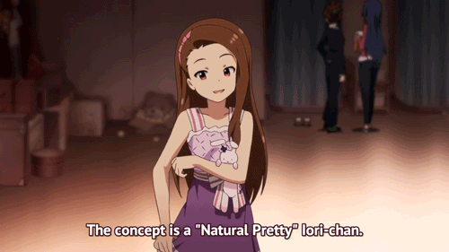 These types are not simply for our benefit but also function as the idols’ respective charm points: the marketable characteristic by virtue of which they appeal to their fans. Our implicit understanding of this is made explicit in the very next episode, which immediately creates nuance in the idols’ characters at the same time. This is because the idols, in some cases, have mixed feelings about their image. When the idols prepare to have new image photos taken—the pictures that will be their first impression on future jobs—Iori ropes the younger idols into dressing like grotesque parodies of womanhood in a misguided effort to appear mature. Iori’s get-up is not just wrong because it is unbelievably tacky (you would hope the rich would have better taste), but because, as the group’s new Producer makes clear, it isn’t a persona that comes naturally to her. In other words, these girls are best marketed as heightened versions of their authentic selves.