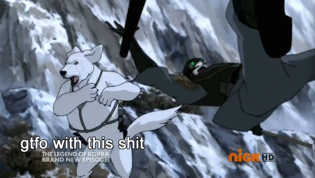Off in the library, Jinora finds out that if Korra doesn’t close the portal before the Harmonic Convergence, Bad Shit will happen in the form of Vaatu getting free. Wait. Didn’t we already know that? Anyway. Unalaq shows up, because Furryfoot the rabbit butterfly is an EVIL FUCKING TRAITOR.