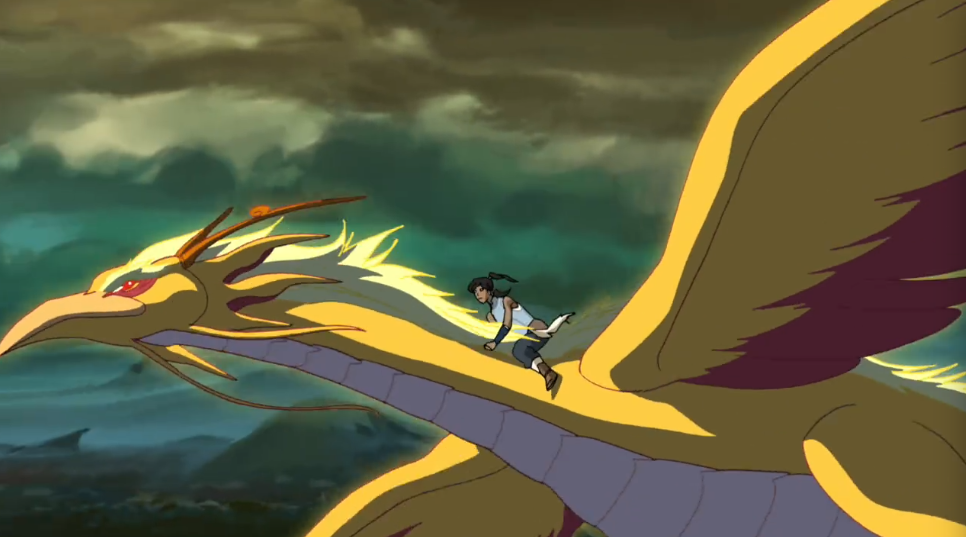 Korra, again an adult, goes off on the chicken dragon to close the portal, finally. Unalaq shows up with Jinora and gives Korra an ultimatum: Either she opens the Northern Spirit Portal, or he takes Jinora’s soul … or something. He traps her soul in the spirit world forever? Not quite sure what magical spirit power has been introduced to the ATLAverse mythology here. Anyway, Korra chooses Jinora—good call—but trusts Unalaq to keep up his end of the bargain and give Jinora back. Bad call. Seriously, Korra, you know him.
