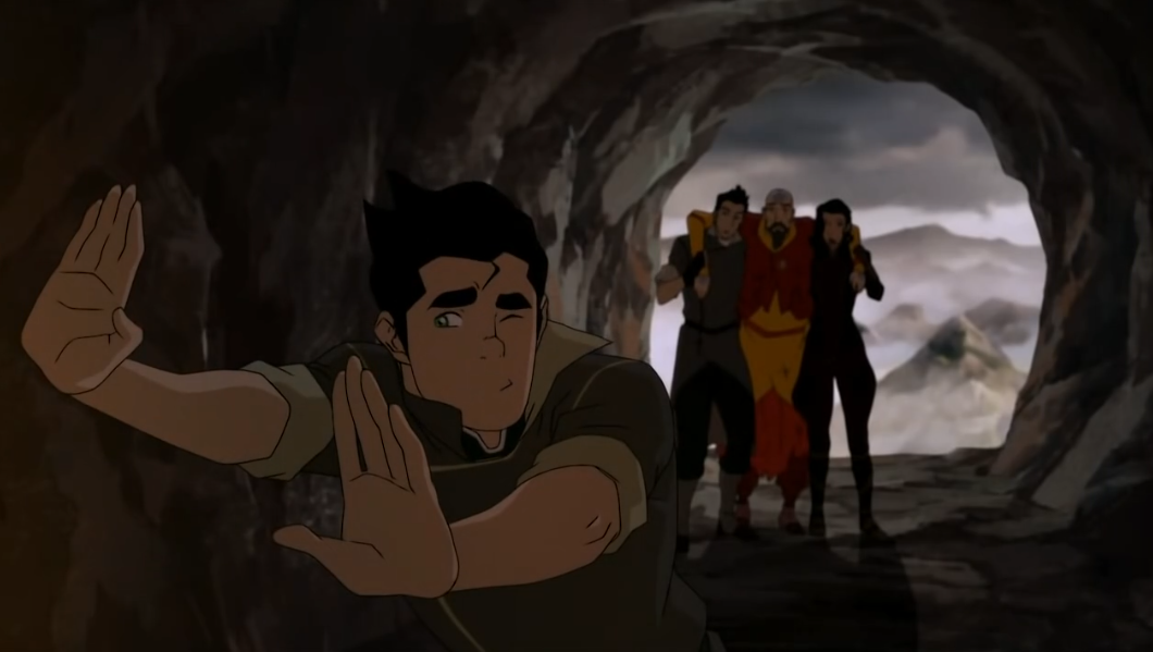 But first! Team Avatar is on an airship en route to the Northern Air Temple arguing about how to respond to Zaheer’s ultimatum. Korra insists that she give herself up in exchange for the airbender’s freedom, though she concedes she won’t actually want to stay Zaheer’s prisoner. “Everybody had better chip in on a rescue operation once the exchange takes place, so help me.” Said rescue op will take two forms: Mako, Bolin, and Asami will meet with Lava Guy for the airbender handoff, and everyone else—Lin, Su, Tonraq, and Su’s metalbender guards—will hide near Zaheer and Korra’s meeting place, ready to swoop in once it’s been confirmed that the airbenders are safe.