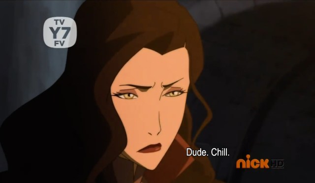 (She then metalbends Bolin’s fly up. Again: pinching.)