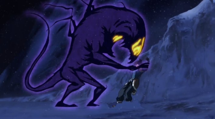 That night, a spirit arrives to fuck shit up, and everyone but everyone—Korra, Mako, Bolin, Tenzin, Tonraq—is unable to defeat it. STOP TRYING TO FIGHT THE SPIRITS, KORRA. Tenzin thinks to ask it, “Hey, WTF is up with you?,” but he just gets slapped in retaliation. Unalaq shows up and does some Tai Chi thing, and the spirit mellows out and leaves.