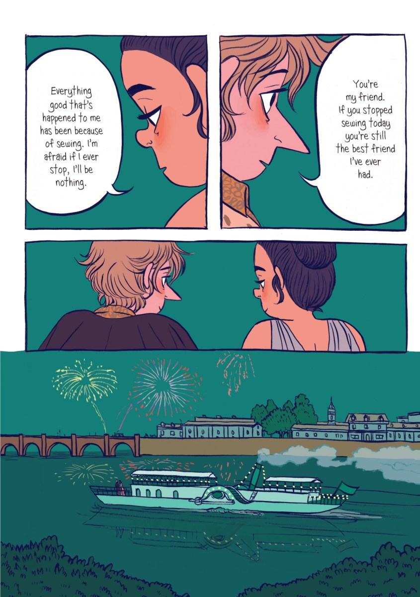TMS: While France is known as the birthplace of fashion, was there any other reason you decided you wanted the graphic novel to take place there? Were there a certain time period or works of art that really drew you into exploring that period?
