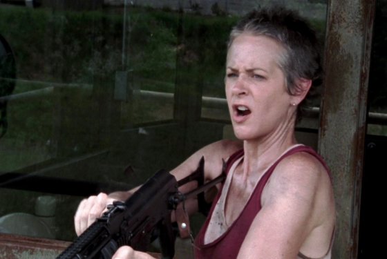 Initially meek and helpless, Carol grows into an independent woman, a warrior, and a dear friend. She becomes very skilled with weapons and can look after herself and others. In the prison she teaches the children how to knife walkers and practices a C-section on a female walker in order to help Rick’s wife, Lori, deliver a child.