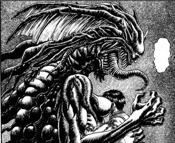 The terror factor of Berserk is legendary. The setting is a cruel pastiche of medieval Europe, complete with fanatical tyrants and bloodthirsty mercenaries, and that’s before the demons show up. The design of the infernal antagonists of the series, the apostles, is enough to send a shiver down even the stiffest of spines.
