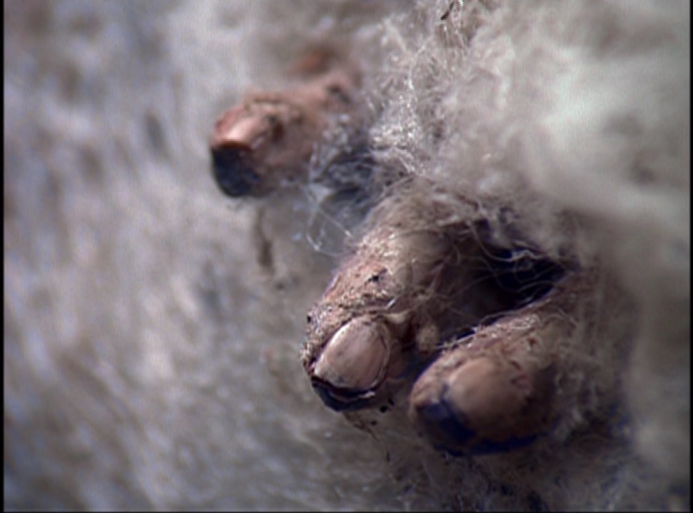 Cabin fever sets in. Scully kills time by sciencing and theorizes that the bugs may be oxidizing enzymes, like fireflies, which would explain the cocoons–they can use them to oxidize proteins from fluids in the body. The bugs actually get into the cabin during the night, causing some alarm, but they don’t attack because the lights are on. The generator heroically holds out til dawn and then Mulder, Scully, and Larry hit the road at full pelt. They make it to their own truck and find the cocooned Humphreys inside. Spinney makes an eleventh hour appearance in his jeep, justifying Mulder’s faith in him, but the tyres are punctured by his own booby traps. Horrific, horrific irony. He’s then swallowed up by the bugs, while the others cower in the jeep and eventually get set upon themselves.